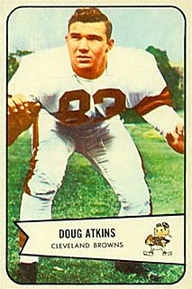 Douglas Leon Atkins was an American professional football player who was a defensive end for the Cleveland Browns, Chicago Bears, and New Orleans Saints in the National Football League (NFL). He played college football for the Tennessee Volunteers under legendary head coach Robert Neyland. He is a member of the College Football Hall of Fame and the Pro Football Hall of Fame.