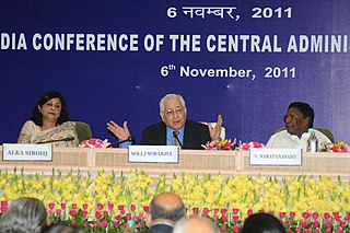 Soli Jehangir Sorabjee, AM was an Indian jurist who served as Attorney-General for India from 1989 to 1990, and again from 1998 to 2004. In 2002, he received the Padma Vibhushan for his defence of the freedom of expression and the protection of human rights.