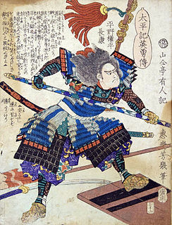 Amari Torayasu was a Japanese samurai of the Sengoku period, and served the Takeda clan under Takeda Nobutora and Shingen. Amari was a shukurō, or clan elder, following Shingen's accession to family headship and was one of "Twenty-Four Generals of Takeda Shingen". He was killed in action at the battle of Uedahara in 1548, together with Itagaki Nobukata. The two were fighting side by side on the frontlines when suddenly a volley of arrows shot them down.