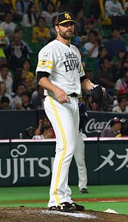 Dennis Scott Sarfate is an American professional baseball pitcher for the Fukuoka SoftBank Hawks of Nippon Professional Baseball (NPB). He has also played for the Milwaukee Brewers, Houston Astros, and Baltimore Orioles in Major League Baseball (MLB) and the Hiroshima Toyo Carp and Saitama Seibu Lions of NPB. While an average reliever in the MLB, Sarfate became one of the greatest closers in NPB history after moving his career overseas. Sarfate holds several NPB records, including most saves in a season and most by a foreign-born pitcher. As of 2020, his 234 career saves rank fifth-most in NPB history. He has been a 3× NPB All-Star, a 3× Pacific League saves leader, a 5× Japan Series Champion, won the Japan Series Most Valuable Player Award, won the Pacific League MVP Award, and won the Matsutaro Shoriki Award.