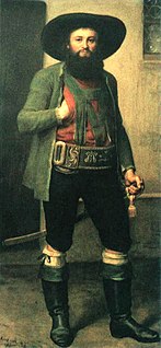 Andreas Hofer was a Tyrolean innkeeper and drover, who in 1809 became the leader of the Tyrolean Rebellion against the revolutionary Napoleonic invasion during the War of the Fifth Coalition. He was subsequently captured and executed.