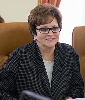 Ekaterina Filippovna Lakhova is a Russian politician and statesman, former deputy of the State Duma of VI convocation from United Russia, deputy chairman of committee of the State Duma for public associations and religious organizations. Member of the General Council of the party United Russia. She was a people's deputy of the RSFSR, a deputy of the State Duma of the I-V convocations. Chairman of the Union of Women of Russia. Currently a member of the Federation Council, a representative of the legislative (representative) body of state power of the Bryansk Oblast, a member of the Committee of the Federation Council on federal structure, regional policy, local self-government and affairs of the North.
