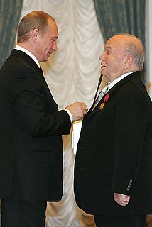Robert Ivanovich Rozhdestvensky was a Soviet-Russian poet and Songwriter who broke with socialist realism in the 1950s–1960s during the Khrushchev Thaw and, along with such poets as Andrey Voznesensky, Yevgeny Yevtushenko, and Bella Akhmadulina, pioneered a newer, fresher, and freer style of poetry in the Soviet Union.