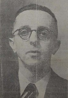 Bernard Ménétrel (1906-1947) was a French physician and political advisor to Marshal Philippe Pétain during World War II. He met with Helmut Knochen and tried to negotiate with Charles de Gaulle on Pétain's behalf.