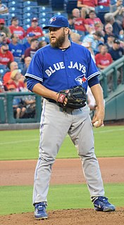 Mark Alan Buehrle is an American former professional baseball pitcher. He played the majority of his Major League Baseball (MLB) career with the Chicago White Sox, playing twelve seasons for the team and winning the World Series with them in 2005. Buehrle also pitched for the Miami Marlins and Toronto Blue Jays.