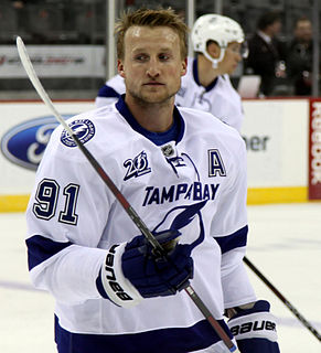 Steven Stamkos is a Canadian professional ice hockey centre and captain of the Tampa Bay Lightning of the National Hockey League (NHL). After a successful OHL career, Stamkos was selected first overall in the 2008 NHL Entry Draft by the Lightning. He is a two-time Maurice Richard Trophy winner as the NHL's leading goal-scorer, is a two-time NHL Second Team All-Star, and has been named to six NHL All-Star Games. He has scored the most points among players born in the 1990s decade. Stamkos captained the Lightning to a Stanley Cup championship in 2020, winning his first title and the franchise's second.