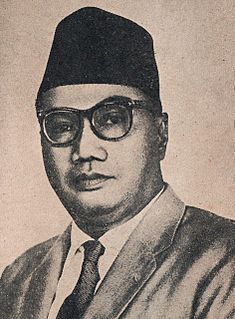 Ruslan Abdulgani was an Indonesian government official and diplomat known for his role as a leader during the Indonesian National Revolution in the late 1940s, and as a key minister and United Nations ambassador in the Sukarno government during the 1950s and 1960s.