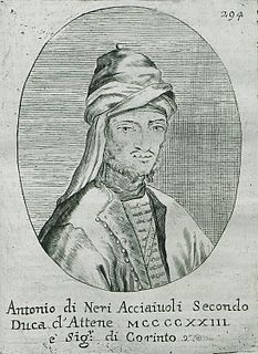 Antonio I Acciaioli, also known as Anthony I Acciaioli or Antonio I Acciajuoli, was Duke of Athens from 1403.