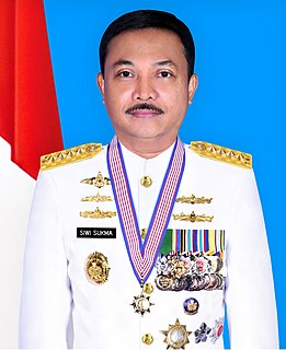 Siwi Sukma Adji is a retired admiral of the Indonesian Navy who had served as its chief of staff since 23 May 2018 until 20 May 2020, replacing Ade Supandi who was retiring.