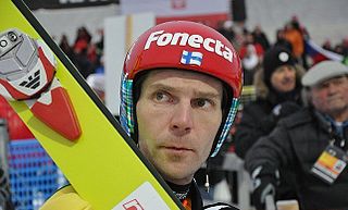 Janne Petteri Ahonen is a Finnish former ski jumper and drag racer. He competed in ski jumping between 1992 and 2018, and is one of the sport's most successful athletes of all time, as well as one of the most successful from Finland. Ahonen won two consecutive World Cup overall titles, the Four Hills Tournament a record five times, two individual gold medals at the World Championships, and the Nordic Tournament once. Nicknamed Kuningaskotka, he has been described as the greatest ski jumper to have never won an individual medal at the Winter Olympics.
