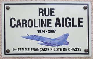 Commandant Caroline Aigle was a French aviator who achieved a historical first when, at the age of 25, she became the first woman fighter pilot in the French Air Force. Her promising military career was cut short by death from cancer seven years later. She was posthumously awarded the Médaille de l'Aéronautique.