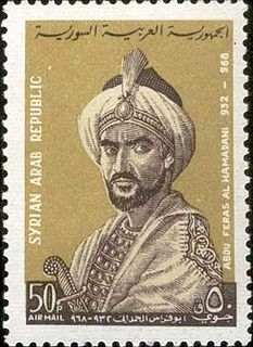Al-Harith ibn Abi’l-ʿAlaʾ Saʿid ibn Hamdan al-Taghlibi (932–968), better known by his nom de plume of Abu Firas al-Hamdani, was an Arab prince and poet. He was a cousin of Sayf al-Dawla and a member of the Hamdanid dynasty, who were rulers in northern Syria and Upper Mesopotamia during the 10th century. He served Sayf al-Dawla as governor of Manbij as well as court poet, and was active in his cousin's wars against the Byzantine Empire. He was captured by the Byzantines in 959/962 and spent several years at their capital, Constantinople, where he composed his most famous work, the collection of poems titled al-Rūmiyyāt (الروميات). He was ransomed in 966, and was killed in 968, when he raised a revolt against his nephew Sa'd al-Dawla, Sayf al-Dawla's successor. He is considered among the greatest figures of classical Arabic poetry.
