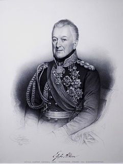 Field Marshal Sir Charles (Carl) August von Alten was a Hanoverian and British soldier who led the famous Light Division during the last two years of the Peninsular War. At the Battle of Waterloo, he commanded a division in the front line, where he was wounded. He later rose to the rank of Field Marshal in the Hanoverian army.