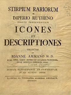 Johann Amman, Johannes Amman or Иоганн Амман, was a Swiss-Russian botanist, a member of the Royal Society and professor of botany at the Russian Academy of Sciences at St Petersburg. He is best known for his Stirpium Rariorum in Imperio Rutheno Sponte Provenientium Icones et Descriptiones published in 1739 with descriptions of some 285 plants from Eastern Europe and Ruthenia. The plates are unsigned, though an engraving on the dedicatory leaf of the work is signed "Philipp Georg Mattarnovy", a Swiss-Italian engraver, Filippo Giorgio Mattarnovi (1716-1742), who worked at the St. Petersburg Academy.