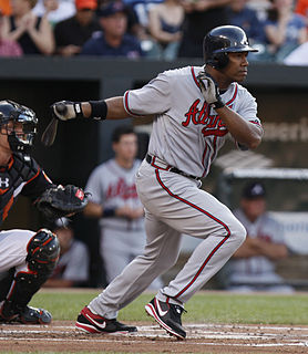Garret Joseph Anderson is an American former professional baseball left fielder. He played in Major League Baseball (MLB) for the California / Anaheim Angels / Los Angeles Angles of Anaheim, Atlanta Braves, and Los Angeles Dodgers between 1994 and 2010. He holds Angels franchise records for career games played (2,013), at bats (7,989), hits (2,368), runs scored (1,024), runs batted in (RBI) (1,292), total bases (3,743), extra base hits (796), singles (1,572), doubles (489), grand slams (8), RBI in a single game (10) and consecutive games with an RBI (12), as well as home runs by a left-handed hitter (272). A three-time All-Star, he helped lead the Angels to the 2002 World Series title, and was named Most Valuable Player of the 2003 All-Star Game.
