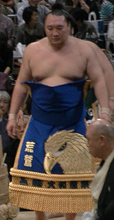 Arawashi Tsuyoshi is a former professional sumo wrestler from Ulan Bator, Mongolia. He made his professional debut in November 2002. He is the 21st Mongolian to reach the top makuuchi division, which he achieved in May 2014. His 68-tournament rise through the ranks is the second-slowest progress for a foreign wrestler after Sentōryū. He won three kinboshi or gold stars for defeating yokozuna. He was a member of three stables, Araiso, Hanakago and Minezaki. His highest rank was maegashira 2.