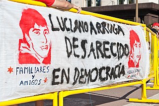 Luciano Arruga is an Argentine teenager who was missing since January 31, 2009, when he was intercepted by police in Buenos Aires Lomas del Mirador, Buenos Aires Province, Argentina. His remains were found on October 17, 2014.