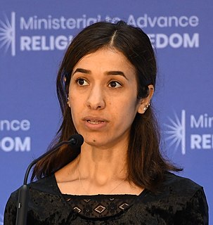 Nadia Murad Basee Taha is an Iraqi Yazidi human rights activist who lives in Germany. In 2014, she was kidnapped from her hometown Kocho and held by the Islamic State for three months.