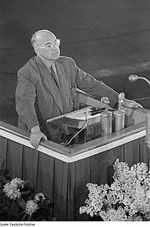 Johannes Robert Becher was a German politician, novelist, and poet. He was affiliated with the Communist Party of Germany (KPD) before World War II. At one time, he was part of the literary avant-garde, writing in an expressionist style.