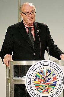 José Antonio García Belaunde is a Peruvian career diplomat, who served as Foreign Minister during the Second Presidency of Alan Garcia from 2006 to 2011, making him the only Foreign Affairs Minister to serve a complete term. On August 2, 2011, his successor in office, Rafael Roncagliolo announced his appointment as Peru's co-agent before the Court of The Hague.