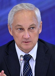 Andrey Removich Belousov is a Russian economist and politician, serving as First Deputy Prime Minister since 21 January 2020. Previously, he was an Assistant to the President of Russia and Minister of Economic Development. His name is often floated as a potential successor to President Vladimir Putin.