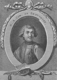 Count Maurice Benyovszky de Benyó et Urbanó was a renowned military officer, adventurer, and writer from the Kingdom of Hungary, who described himself as a Hungarian and a Pole. He is considered a national hero in Hungary, Poland, and Slovakia.