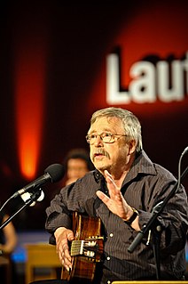 Karl Wolf Biermann is a German singer-songwriter and former East German dissident. He is perhaps best known for the 1968 song "Ermutigung" and his expatriation from East Germany in 1976.