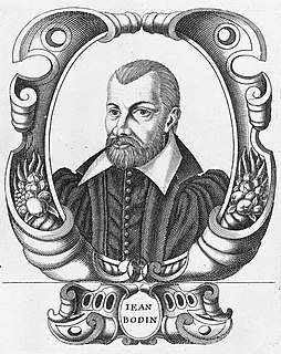 Jean Bodin was a French jurist and political philosopher, member of the Parlement of Paris and professor of law in Toulouse. He is best known for his theory of sovereignty; he was also an influential writer on demonology.