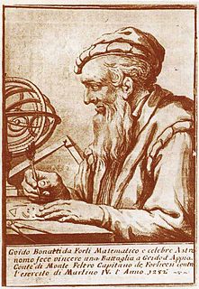 Guido Bonatti was an Italian mathematician, astronomer and astrologer, who was the most celebrated astrologer of the 13th century. Bonatti was advisor of Frederick II, Holy Roman Emperor, Ezzelino da Romano III, Guido Novello da Polenta and Guido I da Montefeltro. He also served the communal governments of Florence, Siena and Forlì. His employers were all Ghibellines, who were in conflict with the Guelphs, and all were excommunicated at some time or another. Bonatti's astrological reputation was also criticised in Dante's Divine Comedy, where he is depicted as residing in hell as punishment for his astrology.