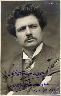 Giuseppe Borgatti was an Italian dramatic tenor with an outstanding voice. The creator of the title role in Umberto Giordano's verismo opera Andrea Chénier, he subsequently earned renown for his performances of the music of Richard Wagner, becoming in 1904 the first Italian tenor to appear at the Bayreuth Festival. He sang a variety of leading roles at La Scala, Milan, from 1896 until 1914, but deteriorating eyesight caused by glaucoma put a premature end to his stage career, after which he turned successfully to teaching.