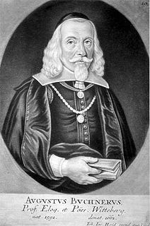 August Buchner was a German philologist, poet and literary scholar, an influential professor of poetry and rhetoric at the University of Wittenberg.