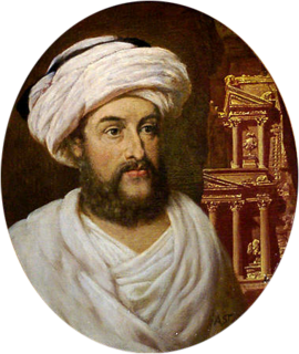 Johann Ludwig Burckhardt was a Swiss traveller, geographer and orientalist. Burckhardt assumed the moniker Sheikh Ibrahim Ibn Abdallah during his travels in Arabia. He wrote his letters in French and signed Louis. He is best known for rediscovering the ruins of the ancient Nabataean city of Petra in Jordan.