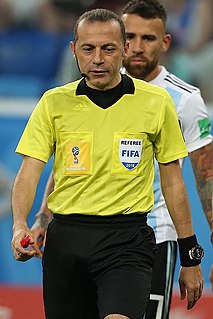 Cüneyt Çakır is a Turkish football referee. He has been FIFA listed since 2006 and a member of the UEFA Elite since 2010.