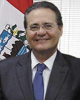 José Renan Vasconcelos Calheiros is a Brazilian politician and former President of the Senate of Brazil. He has represented the state of Alagoas in the senate as a member of the Brazilian Democratic Movement Party since 1 February 1995. Renan's presidency of the Brazilian Senate, a term that started 1 February 2013, was revoked on 5 December 2016 by a minister of the Brazilian Supreme Court, Marco Aurélio Mello, who said that a person under investigation could not be in the line of succession for the presidency. However the Supreme Court decided 7 December 2016 that Renan could remain senate president, without being in the succession.