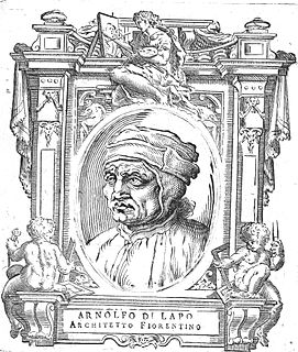 Arnolfo di Cambio was an Italian architect and sculptor. As an architect he is most known for the original design of Florence Cathedral, while his most important surviving work as a sculptor is the tomb of Cardinal de Braye in S. Domenico, Orvieto.