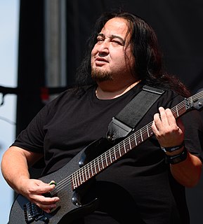 Dino Cazares is a Mexican-American musician, known for being the guitarist and one of the co-founders of industrial metal band Fear Factory. He is also the co-founder of the metal bands Divine Heresy, Asesino, and Brujeria. Cazares popularized the use of digital amp modelling processors for seven and eight-string guitars in metal music.