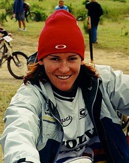 Anne-Caroline Chausson is a French professional cyclist who competes in bicycle enduro, bicycle motocross (BMX), downhill time trial and cross-country mass start, dual, and four-cross mountain bicycle racing. She is best known for having won thirteen Union Cycliste Internationale senior mountain bike world championship rainbow jerseys, fourteen European mountain bike championships, and five consecutive Mountain Bike World Cup downhill series (1998-2002). She was nominated for the 2003 Laureus World Sports Awards Alternative Sportsperson of the Year. At the 2008 Summer Olympics in Beijing, Chausson competed for France in the inaugural women's BMX event, winning the gold medal.
