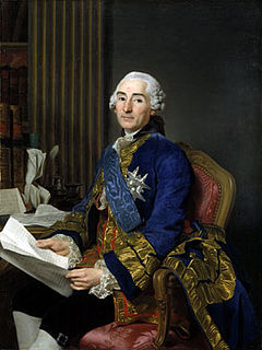 Étienne François, Marquis de Stainville, Duc de Choiseul was a French military officer, diplomat and statesman. From 1758 and 1761 and from 1766 and 1770, he was Foreign Minister of France and had a strong influence on France's global strategy throughout the period. He is closely associated with France's defeat in the Seven Years' War and subsequent efforts to rebuild French prestige.