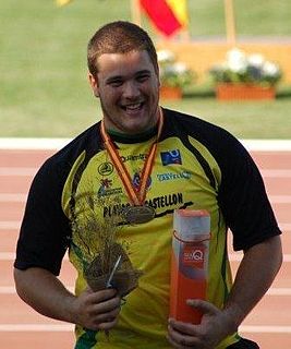Javier Cienfuegos Pinilla is a Spanish hammer thrower and the junior world record holder. Javier represents his club CA Playas de Castellón, and is coached by Raul Jimeno. His personal best and junior world record with the 6 kg hammer, a throw of 82,96 m, was set in Madrid June 17, 2009. On May 5, 2012, he became the Spanish record holder with the senior weight hammer, which weighs 7,26 kg (16 lbs), after making a throw of 76,21 meters. He established a new national record of 78.70 m at the Estadi Olímpic Camilo Cano of La Nucia, on 31 August 2019.
