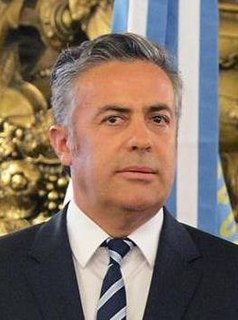 Alfredo Cornejo is an Argentine politician. He leads the Radical Civic Union and is a National Deputy since 2019. He was Governor of Mendoza Province from 2015 to 2019.