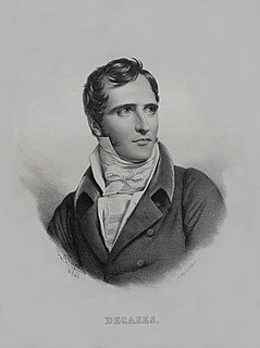 Élie, 1st Duke of Decazes and Glücksbierg was a French statesman, leader of the liberal Doctrinaires party during the Bourbon Restoration.
