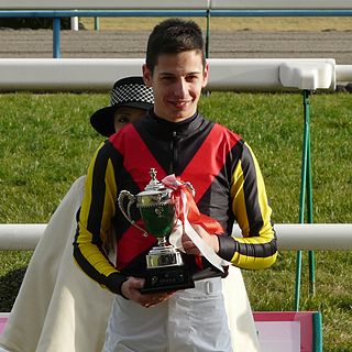 Cristian Demuro is an Italian jockey who competes in Flat racing. Demuro is now based in France and is noted for his major race wins on in the Prix du Jockey Club and Prix de l'Arc de Triomphe riding Sottsass. He was champion jockey in Italy in 2011 and 2012. His elder brother Mirco also as a jockey, currently based in Japan.