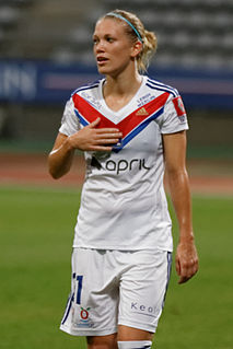 Lara Joy Dickenmann is a Swiss footballer who plays for German club VfL Wolfsburg, after seven-season stint with French club Olympique Lyonnais. She is a versatile footballer who can play as a midfielder or a full-back on either side of the field. She formerly played on the college level at the Ohio State University breaking many records and earning several player honors. In 2008, Dickenmann departed the university and joined D1 Féminine club Lyon.