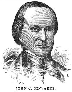 John Cummins Edwards was a Democratic politician from the state of Missouri. He served as a member of the 27th United States Congress as well as Missouri's ninth Governor.