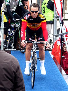 Niko Eeckhout is a Belgian former professional road racing cyclist, who rode professionally between 1992 and 2013. He was the 2005–2006 UCI Europe Tour series and the 2006 Belgian National Cycling Championship Road Race champion, and currently works for the An Post–Chain Reaction Team as a coach.