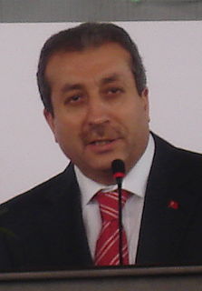 Mehmet Mehdi Eker is a Turkish politician who served as the Minister of Food, Agriculture and Livestock of Turkey from 2005 until 2015. He was elected a Member of Parliament for the electoral district of Diyarbakır for Democratic People's Party in 2002. He was re-elected in 2007 and 2011 for the Justice and Development Party (AKP). He was again elected as an MP in 2018.