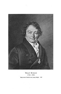 Paul Erman was a German physicist from Berlin, Brandenburg and a Huguenot of the fourth generation. He was the son of the historian Jean Pierre Erman (1735–1814), author of Histoire des réfugiés.