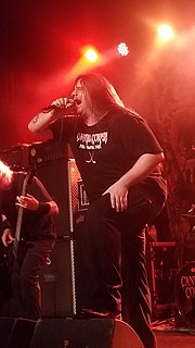 George "Corpsegrinder" Fisher is an American death metal musician who is the vocalist for the American death metal band Cannibal Corpse, the melodic death metal band Paths of Possession, and the extreme metal supergroup Serpentine Dominion. He recorded two albums with Florida's Monstrosity before leaving and joining Cannibal Corpse in late 1995, replacing vocalist Chris Barnes, who is now the vocalist for Six Feet Under.