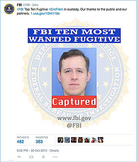 Eric Matthew Frein is an American domestic terrorist and murderer, convicted and sentenced to death for the 2014 Pennsylvania State Police barracks attack in which he shot and killed one State Trooper, and seriously injured another. A letter to his parents made it clear that he hoped to spark a revolution by his actions.