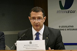 Rogério Augusto Viana Galloro is a Brazilian police officer and former Director-General of the Federal Police of Brazil (PF). Joined the PF in 1995. Between April 2011 and June 2013, Galloro was attache of the Federal Police in the United States of America.